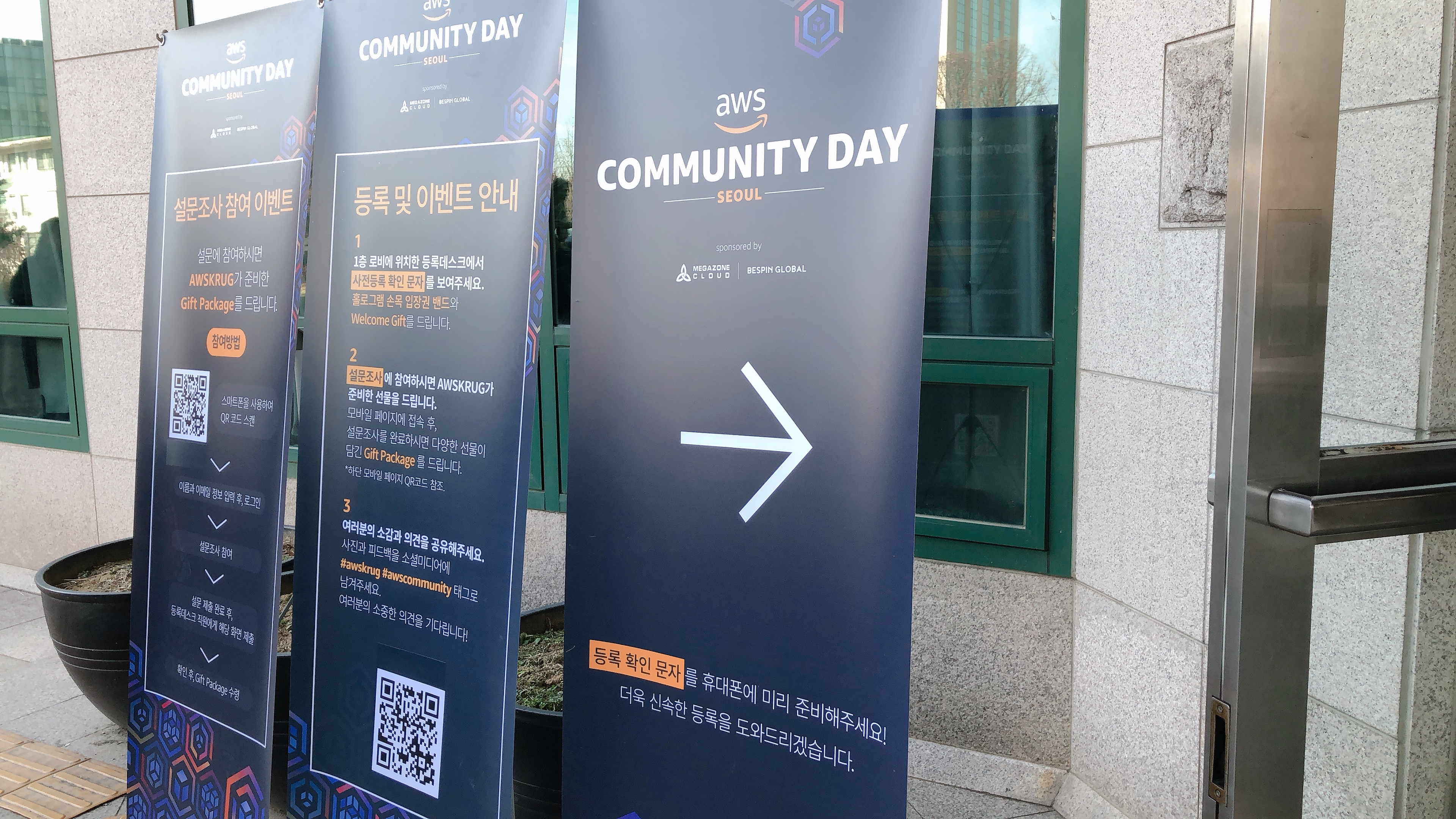 올해 aws 한국 사용자 모임(awskrug)에서 주최하는 커뮤니티 데이에 신청을 하고 참석하게 되었는데요^^