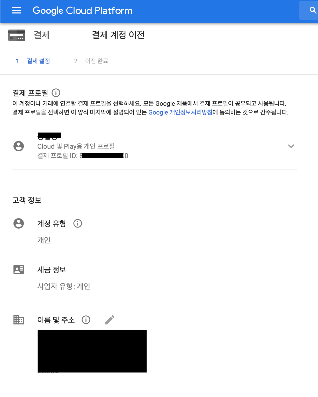 계정을 이전하려면 결제 계정 이전 페이지(http://console.cloud.google.com/billing/migrate)로 이동하세요.