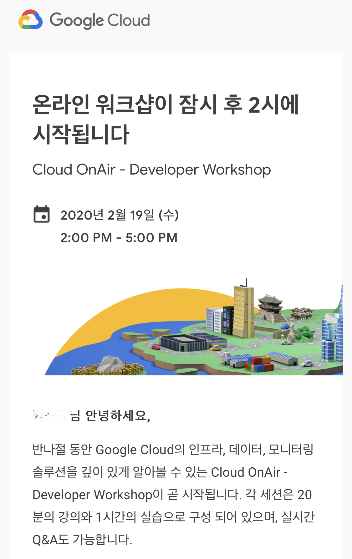 Cloud OnAir - Developer Workshop2020년 2월 19일 (수)2:00 PM - 5:00 PM