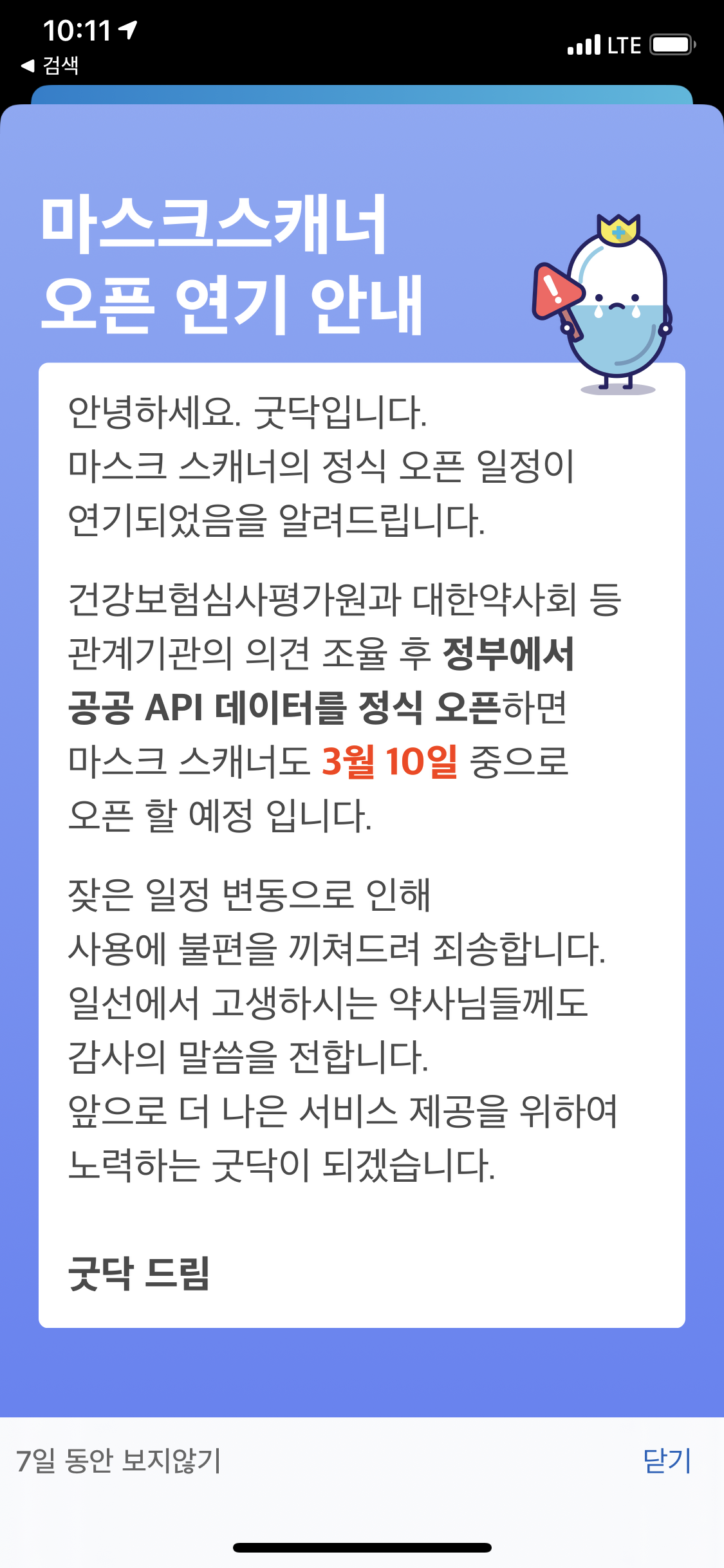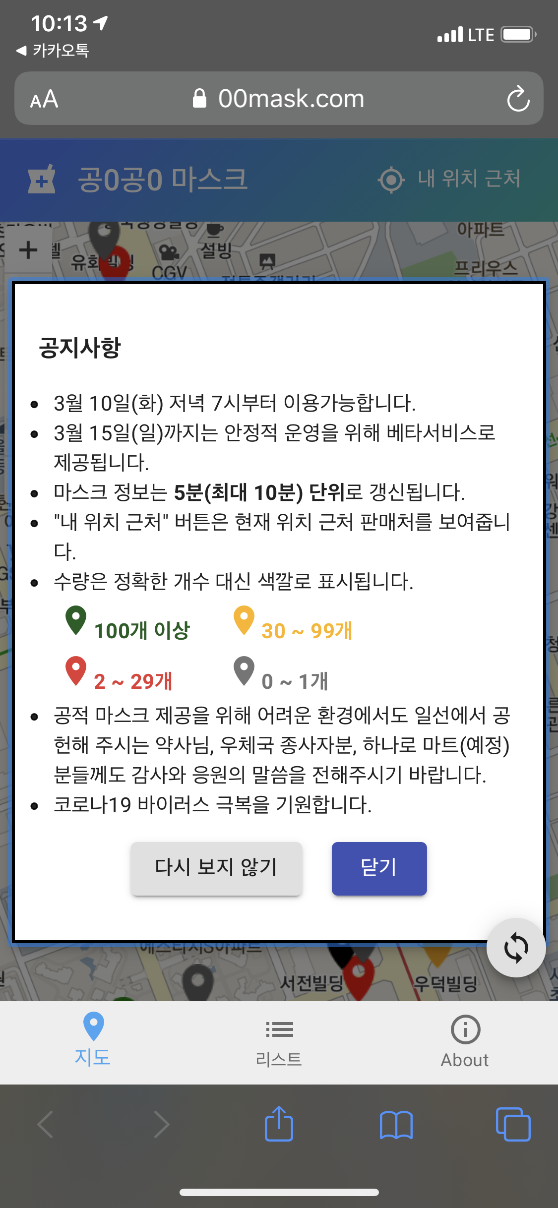 3/10일부터 오픈된다고 공지가 되어 있네요~ 정부에서 제공하는 공공 api를 사용해서 정보를 제공해 주니보네요.