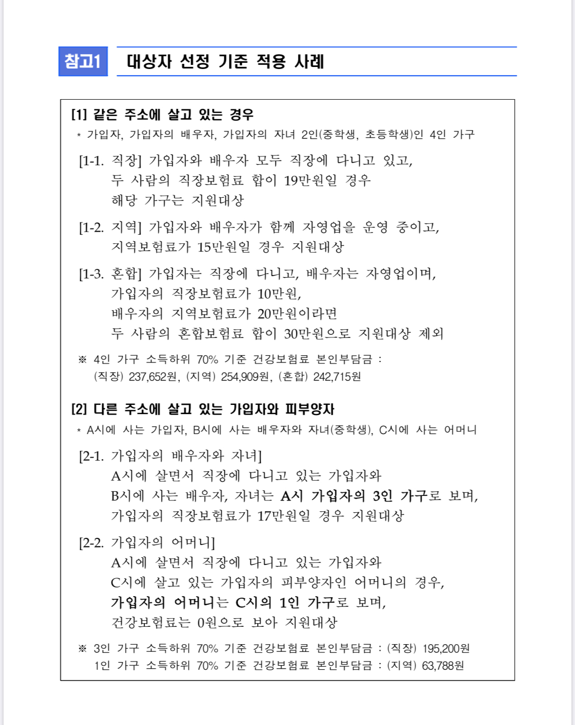 구체적으로는 신청 가구원에 부과된 ’20.3월 기준 본인부담 건강보험료