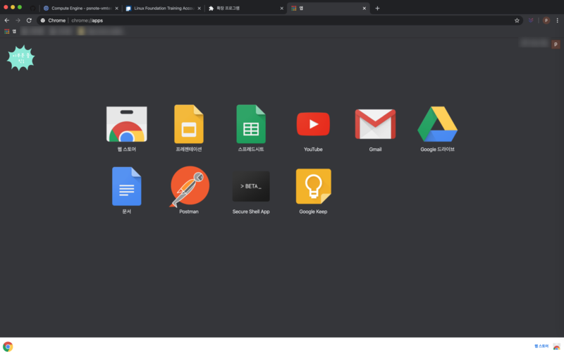 2. 크롬브라우저에서 상단에 [앱] 버튼을 누르거나 주소를 직접 입력하여 확장 프로그램 다운로드 페이지로 이동한다.