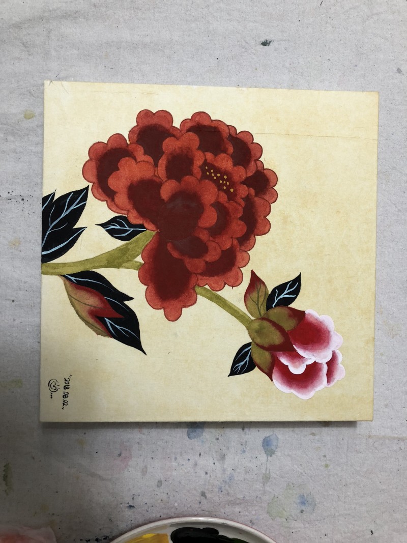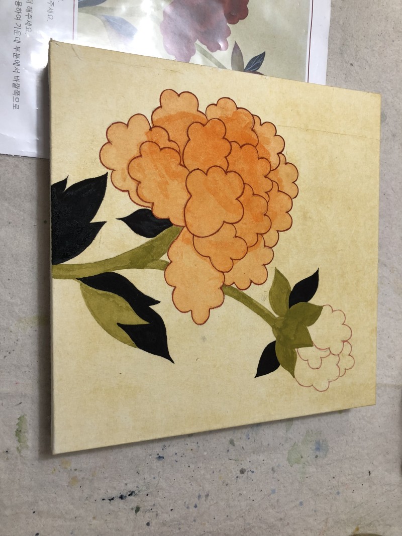 이번에 좀더 난이도를 높여 모란도를 도전했습니다. 이것도 밑그림은 강사님이 스케치를 해주셨구요.