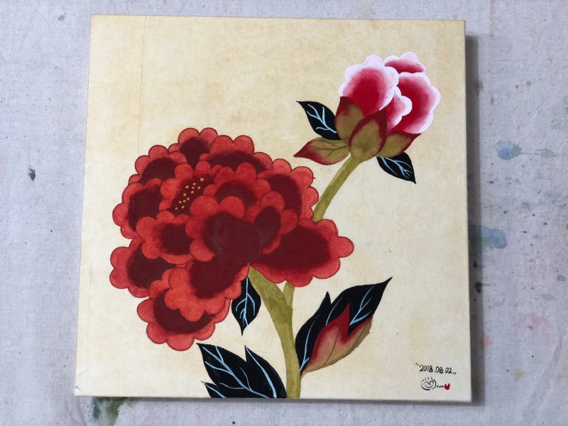 이번에 좀더 난이도를 높여 모란도를 도전했습니다. 이것도 밑그림은 강사님이 스케치를 해주셨구요.