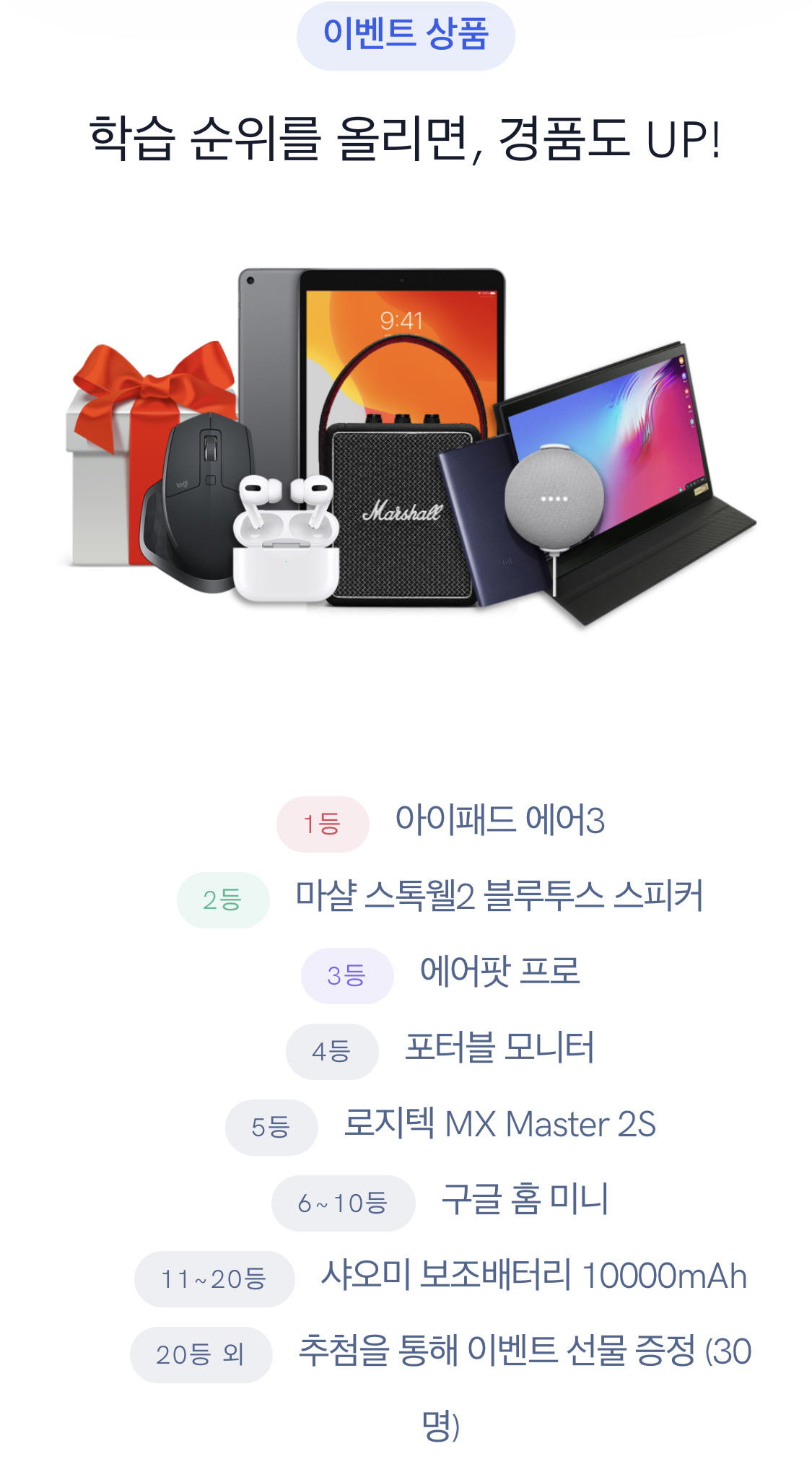 상위 순위 이외에도 추첨을 통하여 선물을 준다고 합니다.