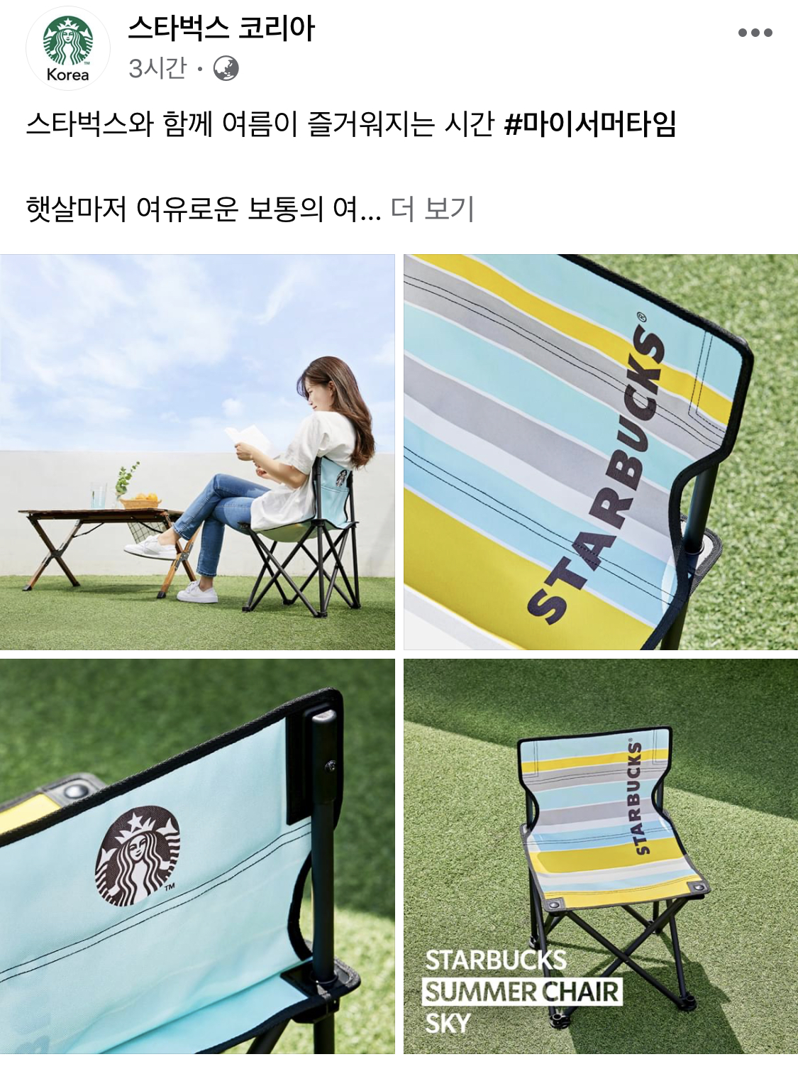 파란 하늘과 깔 맞춤 한 스카이 컬러의 스타벅스 서머 체어가 여름을 더욱 여유롭게 만들어줄 거예요. 😊