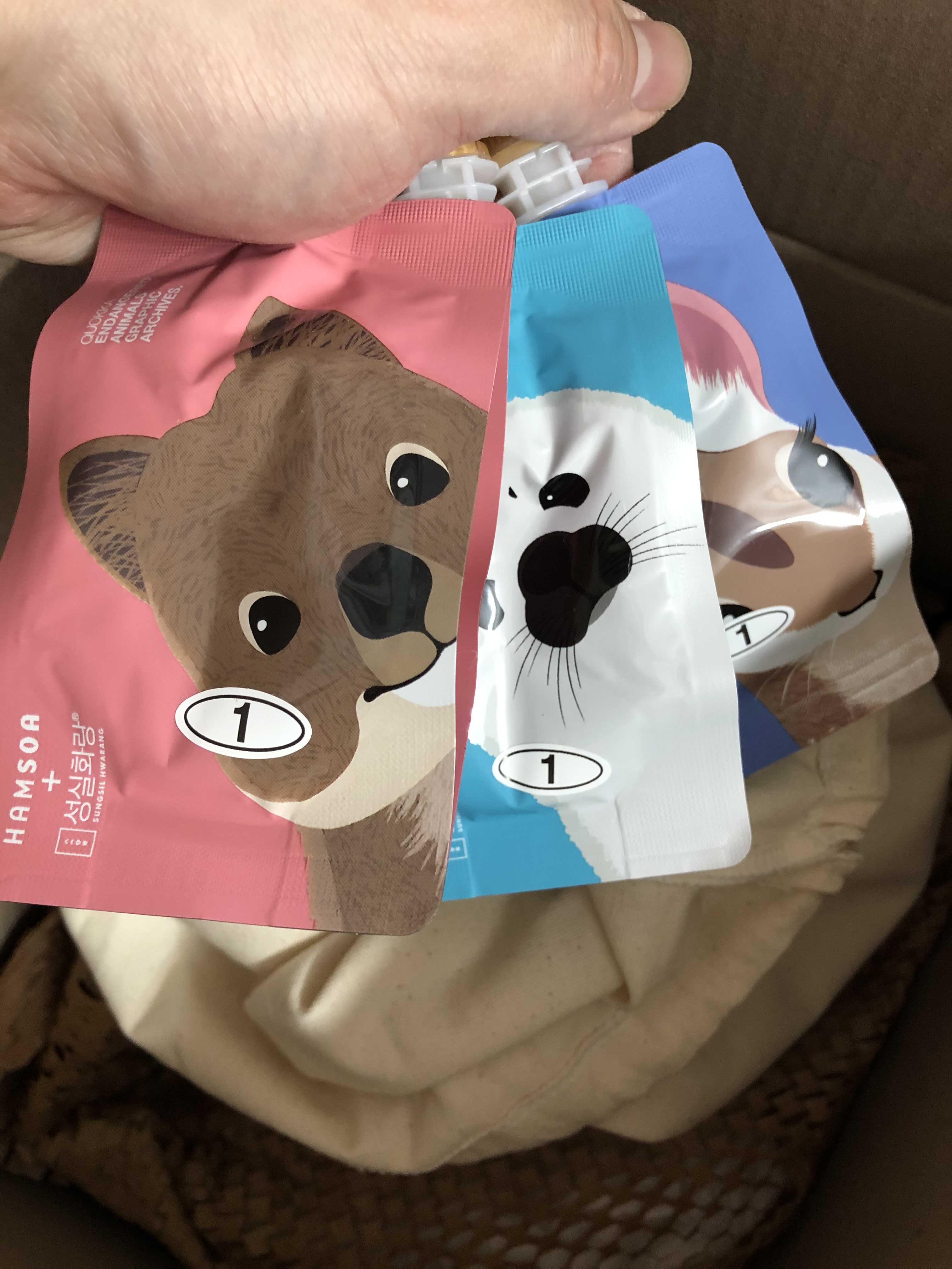 꼭 아이스크림 설레임(?) 처럼 하나씩 동물 캐릭터들이 그려진 귀여운 포장으로 되어 있답니다.