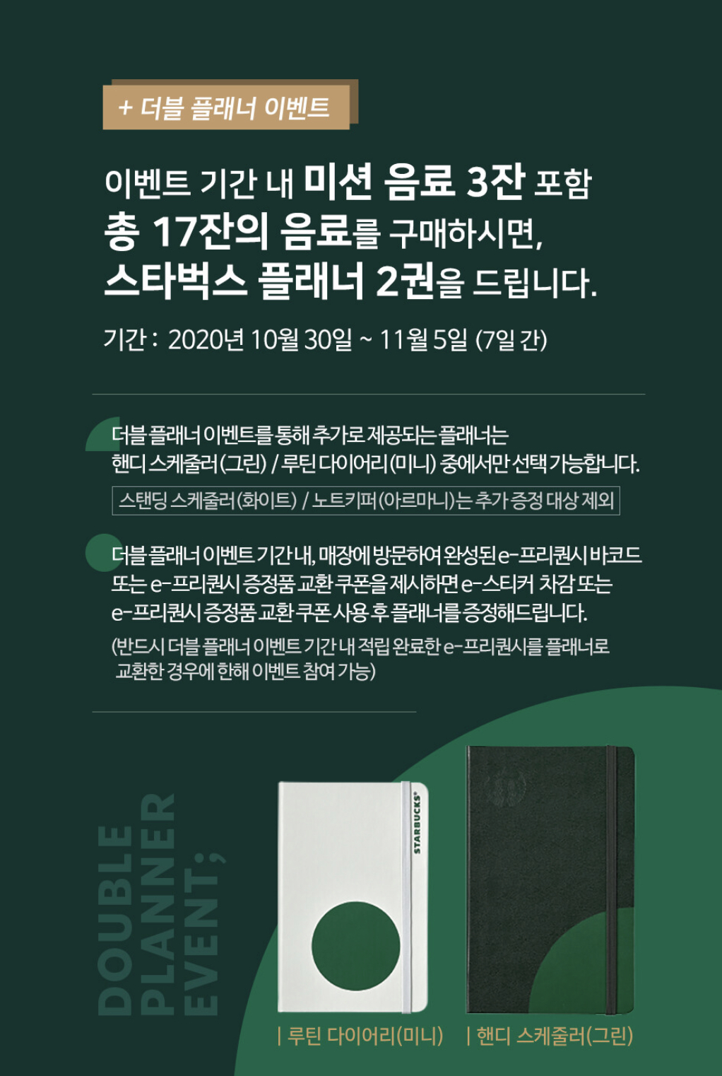 11월 5일까지 모두 완성하시면 더블 플래너 이벤트를 하고 있어요! 두권 받을수 있구여! 아래 내용 확인해 보세요^^