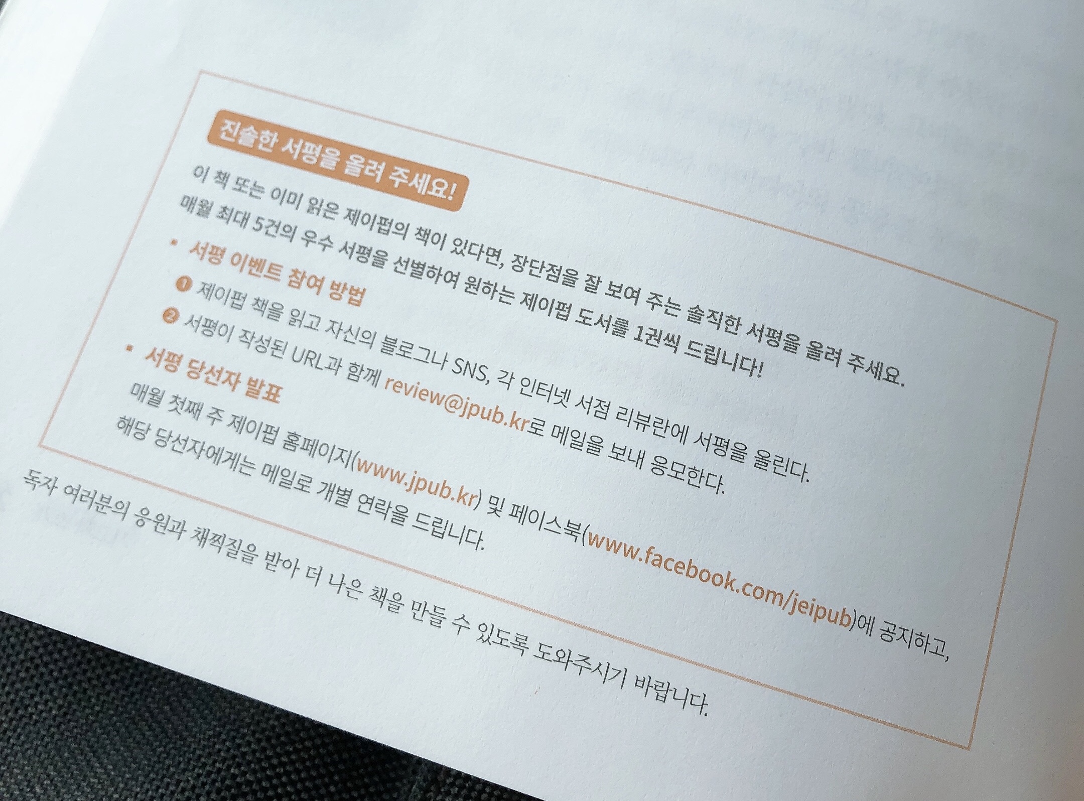 책에 대한 자세한 내용은 아래 제이펍 블로그를 통해 볼수 있습니다 ^__^