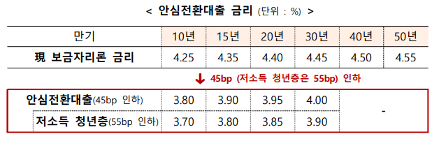 - 안심전환대출 대환을 목적으로 기존 주담대 해지시 금융기관의 중도상환수수료는 면제