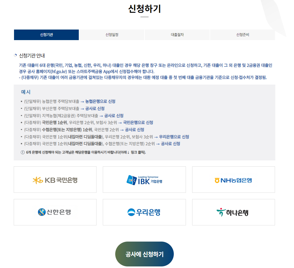 - 기존 주담대 금융기관에 따라 신청/접수처가 다릅니다.