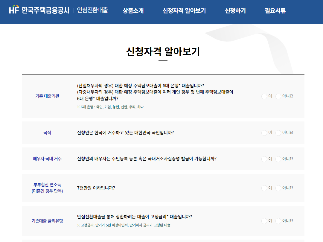 그럼 주택금융공사 홈페이지 기준 신청 자격, 신청방법에 대해 한번 알아보겠습니다.