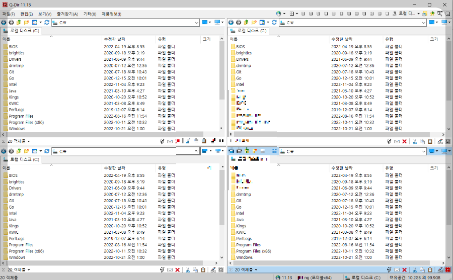 Q-Dir 프로그램의 다중 탐색창 윈도우 폴더 관리