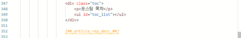 실제 포스팅 목차를 표시할 부분에 태그를 추가해주기
