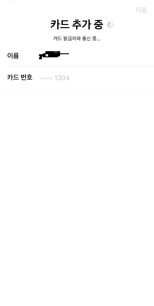 그러면 카드가 추가 되는 화면이 진행됩니다.