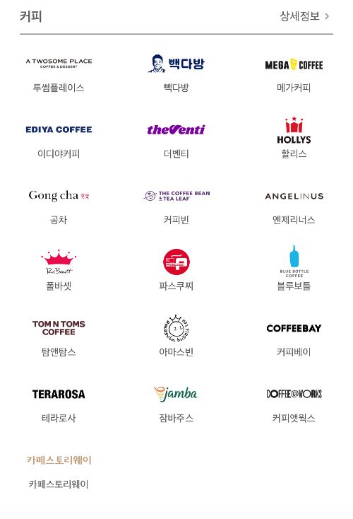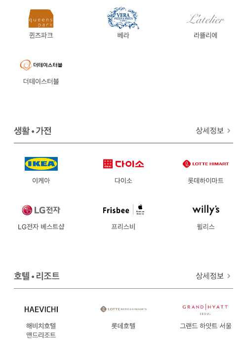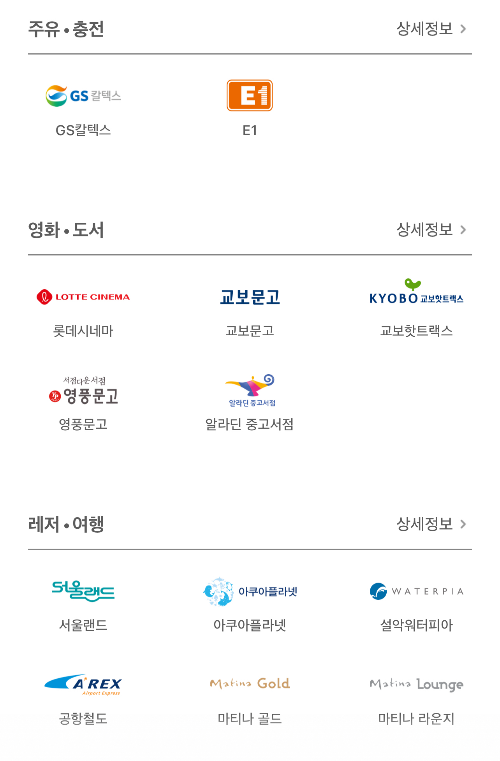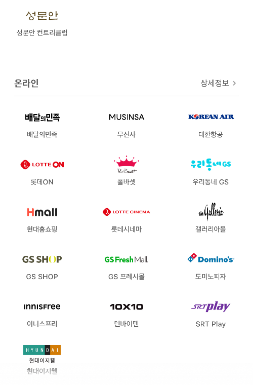 현재 기준 현대 카드 앱에서 확인 가능한 사용처들입니다.
