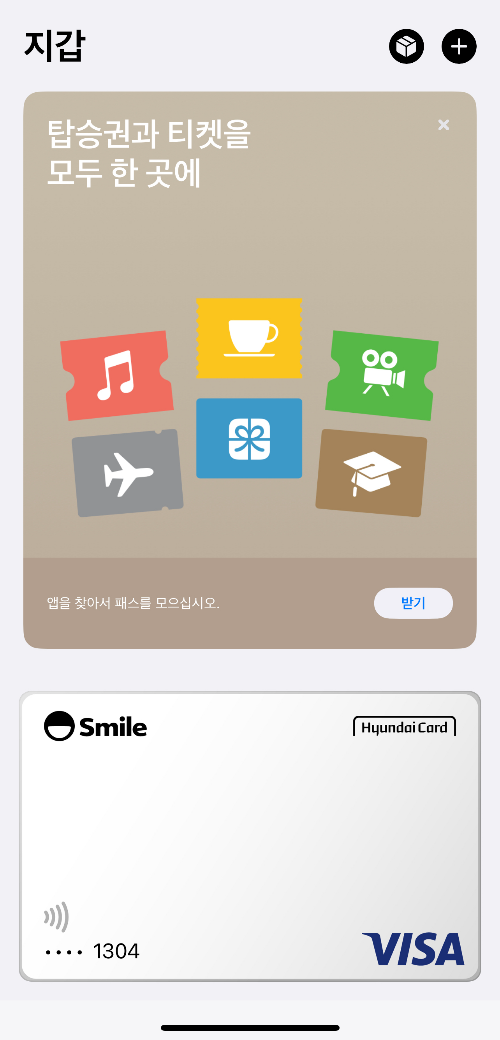 그러면 아이폰 지갑 앱에 스마일카드를 추가한다고 나옵니다.