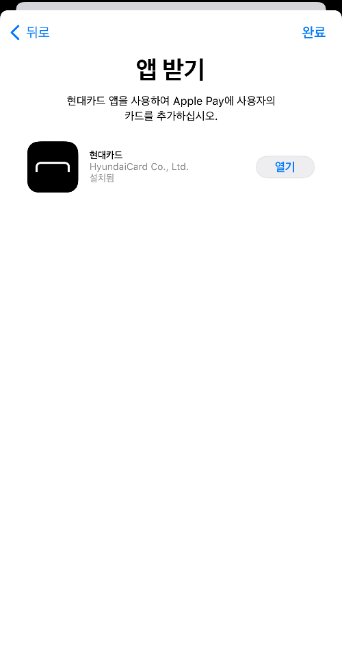 카드 등록은 현재 현대카드만 되기 때문에 현대카드 앱이 설치되어 있으셔야 합니다.