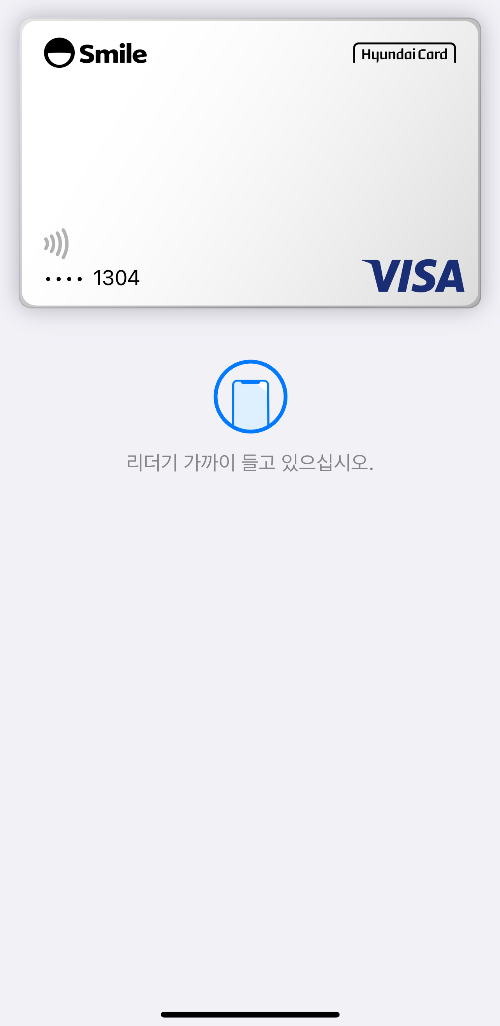 그러면 카드가 선택되고 Face ID 또는 Touch ID로 인증을 한 후 NFC단말에 태깅하여 결제를 진행하시면 됩니다.