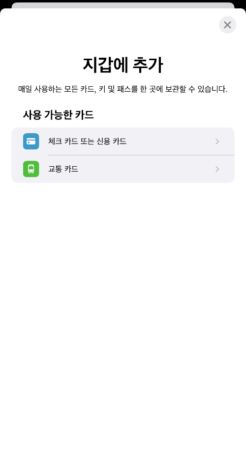 그러면 지갑에 추가 화면으로 이동됩니다.