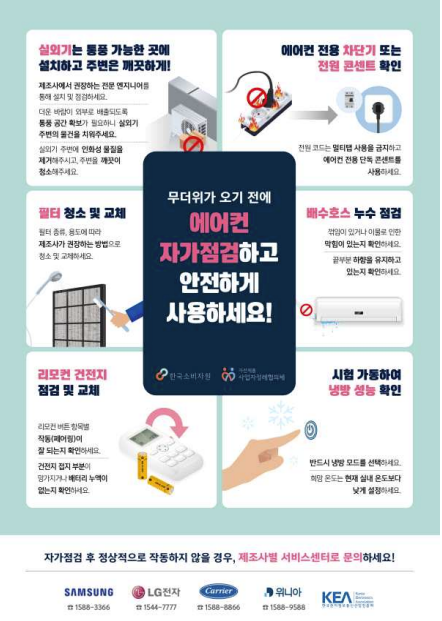 한국소비자원은 주요 에어컨 제조사와 함께 '에어컨 안전점검 캠페인'을 실시한다고 합니다.