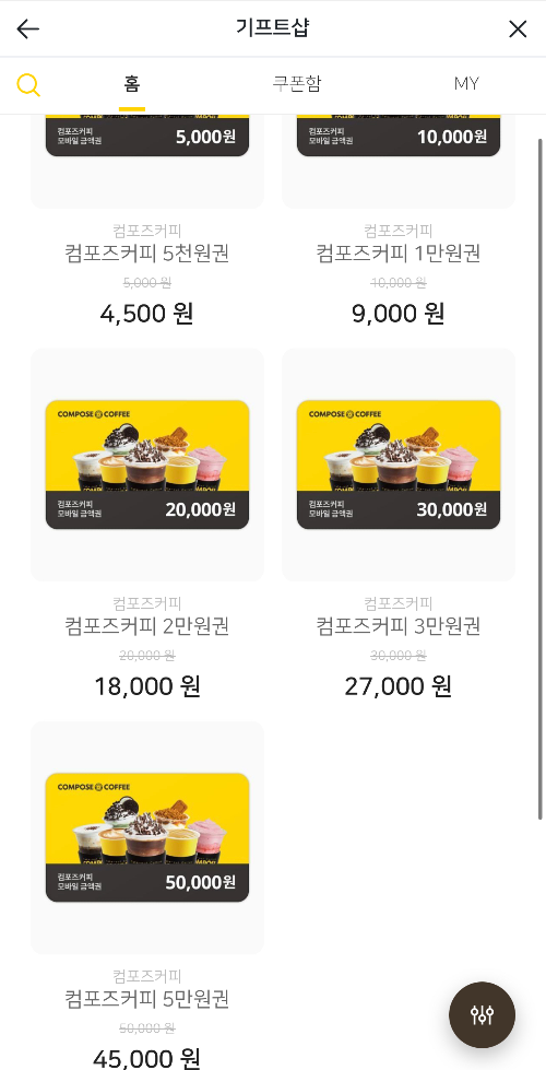 참고로 커피를 자주 이용하시는 분들은 컴포즈 커피 상품권을 구매해서 10% 할인 혜택을 받으시는 것도 추천드립니다.