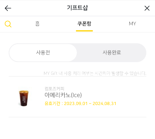 1. 구매 또는 선물 받은 쿠폰 확인하기