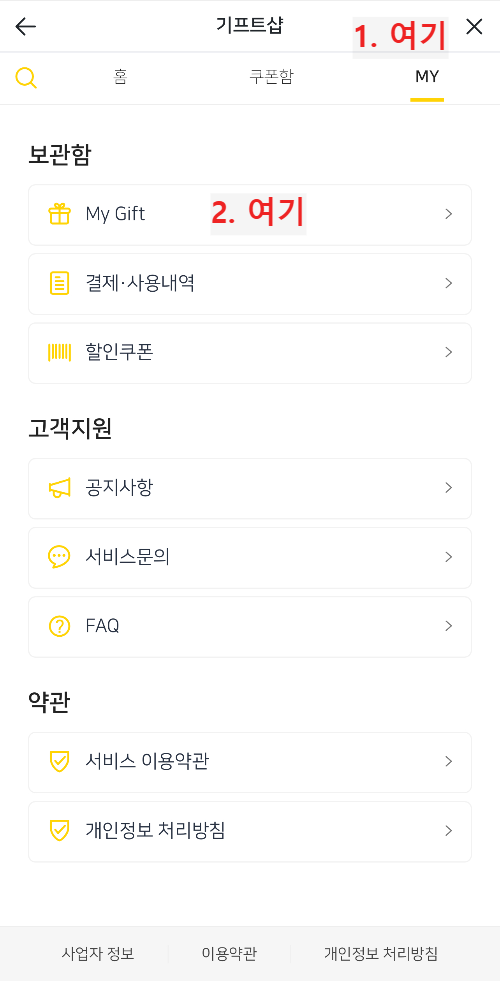 1. 구매 또는 선물 받은 쿠폰 확인하기