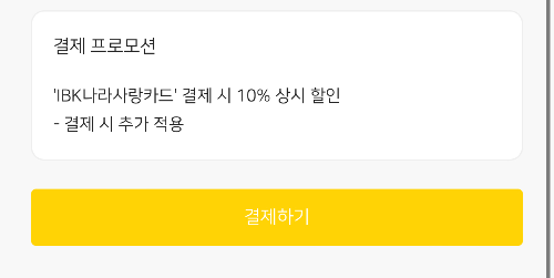 혹시 IBK 나라 사랑 카드를 가지고 계시다면 10% 더 추가 할인 받으실 수 있으니 한번 확인해 보시기 바랍니다^^