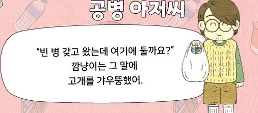 "빈 병 갖고 왔는데 여기에 둘까요?"
