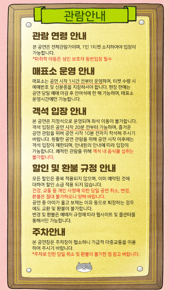 아래 안내사항을 잘 숙지하셔야 좋은 공연을 즐기는데 많은 도움이 된답니다.